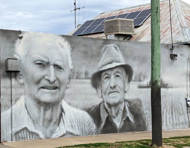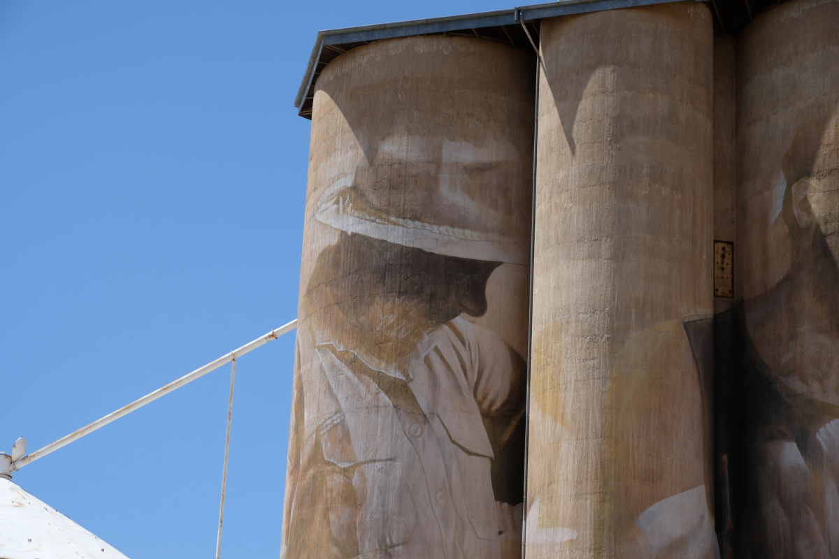 We quickly made our way to the silos at St James, to see a group of silos, painted by Tim Bowtell, one silo in particular shows Sir George Coles who grew up in the St James township and took over the St James General Store from his father, expanding it to the empire it is today.