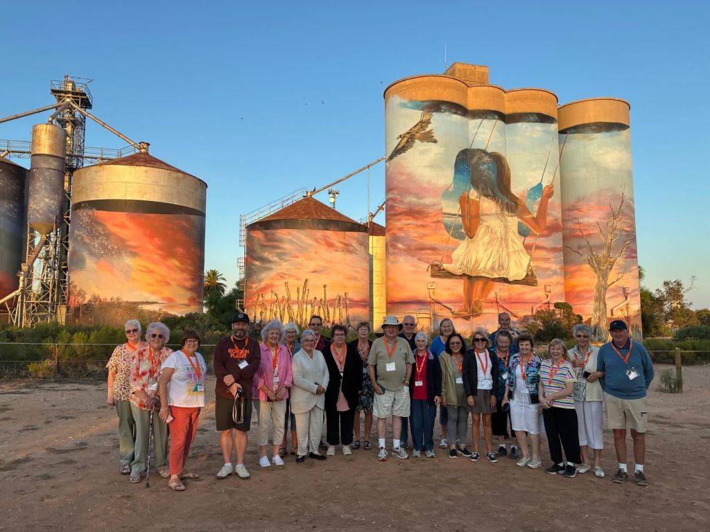 After our cruise, we made our way to the lovely little town of Tongala, a town which in 2021 was voted the #1 street art town in Australia, with over 50 murals, many painted by Murray Ross, a local who we met when we had lunch provided by the local Lions club. I took great pleasure in watching Murray drawing a fun sketch for me whilst I chatted to him, he then created a drawing of a paddle steamer on the river, which we all received a copy for at the end of our trip. Murray then boarded our bus and took us around the murals dotted around town, it was really good to meet such a talented and generous guy.