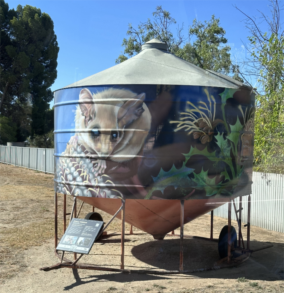 We also stopped for a time in Woomerlang, the birth place of Nick Cave, to see a series of small portable silos showing local wildlife painted by various artists including Jimmy Dvate.
