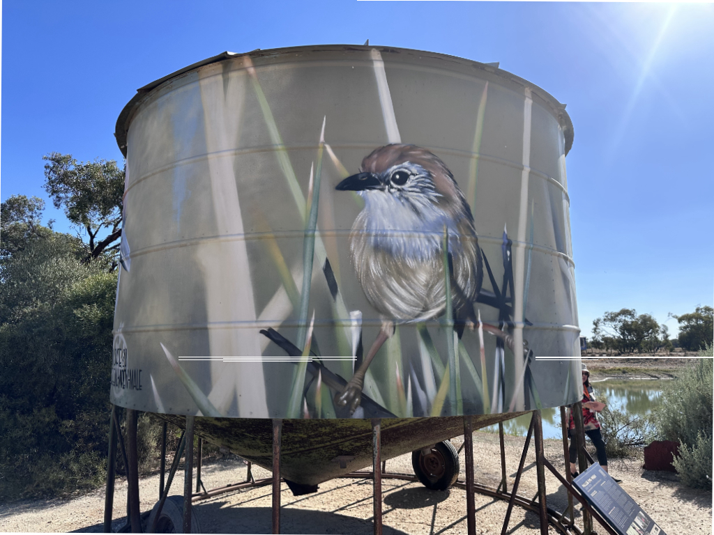 From Horsham we made our way to Murtoa to visit another Smug mural, this time commemorating Murtoa-born, Dr. John Cade, a Psychiatrist who identified that 1 in 30 Australians suffer from mental health issues, Smug used images of 30 types of native birds to represent that number.
