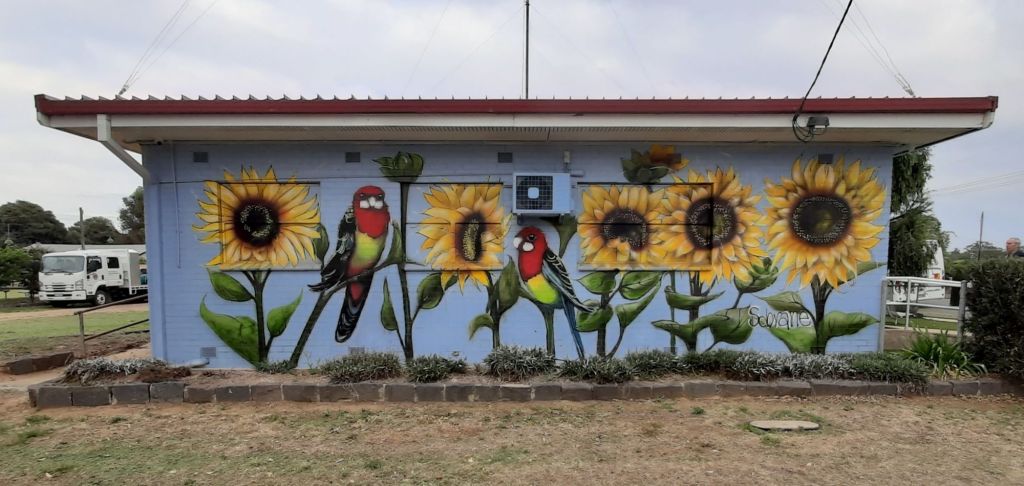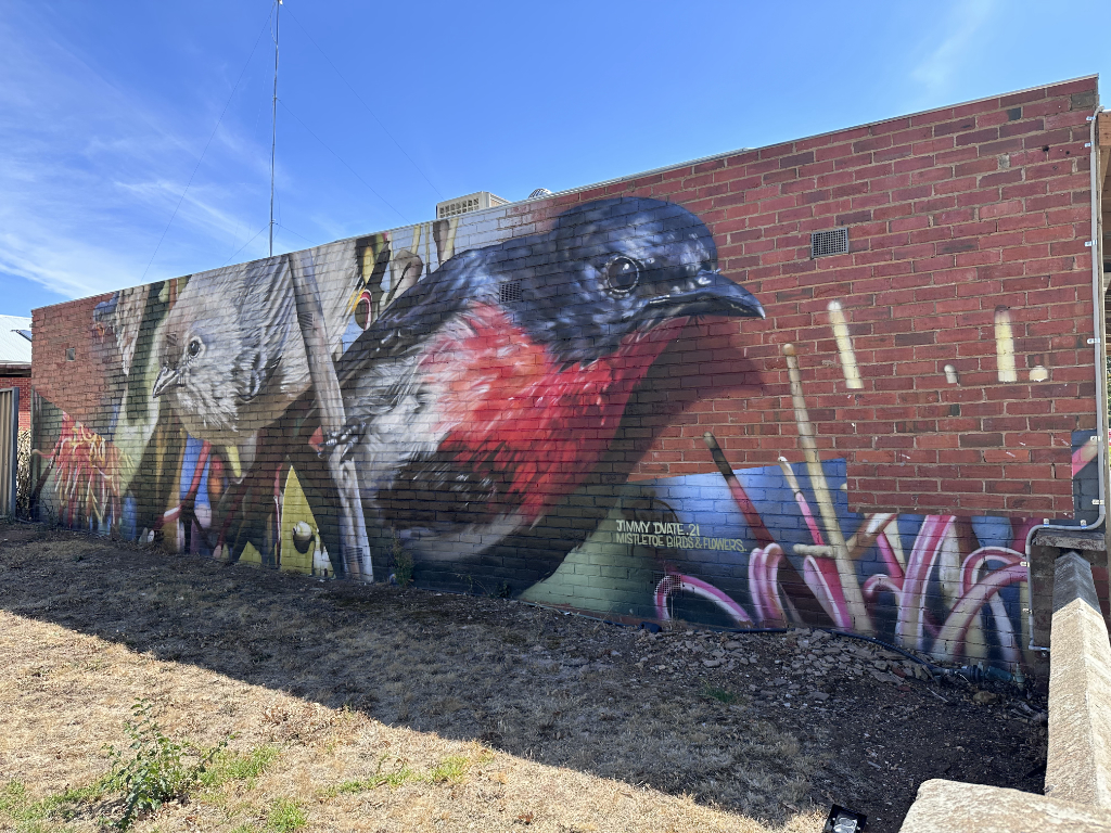 The next stop on the trip was in Picola, to view yet another Jimmy Dvate mural of a Superb Parrot he painted in 2020, it was certainly up to his usual high standard.