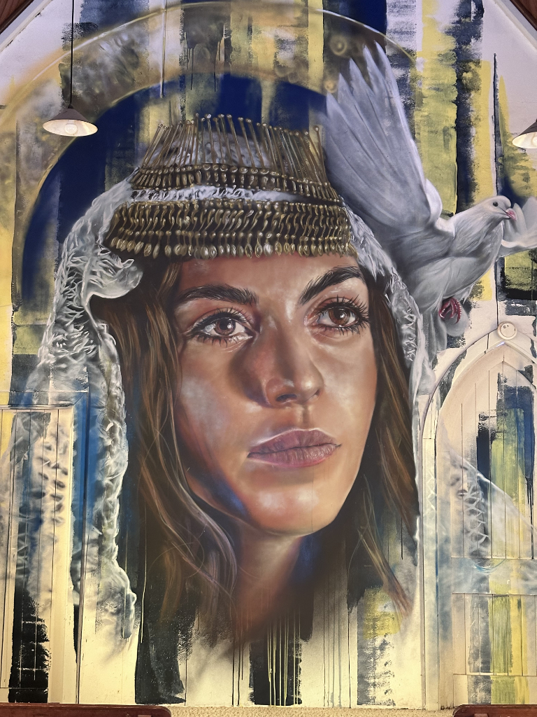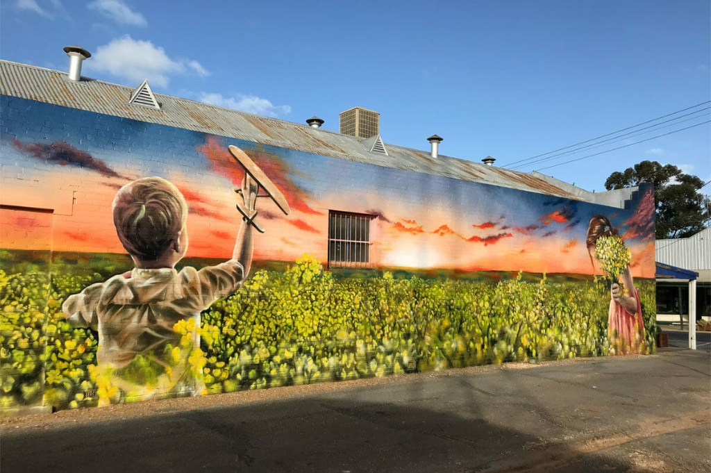 No visit to Goorambat would be complete without a visit to the tiny Uniting Church in the town to see a striking mural of ‘Sophia’, painted by Matt Adnate in 2017.