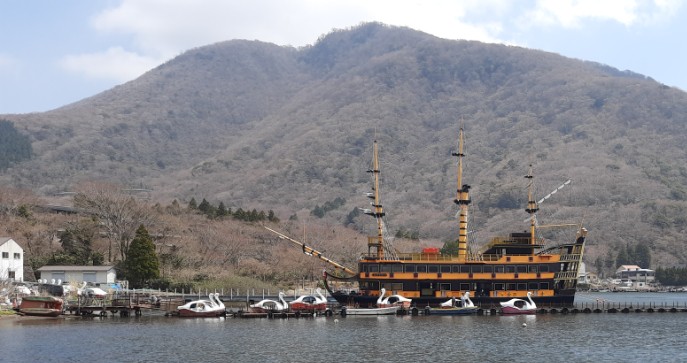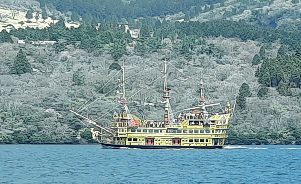 Another interesting day today, using our provided Hakone freedom pass, we caught a bus outside the accommodation to Gora to then take the Hakone Tozan Cable Car up the mountain to the Hakone Ropeway, stopping at the top in Owakudani to view the sulphur springs, the interesting thing there was the Black Egg shop, which sold eggs boiled and treated in the sulphur springs, which turned the shell black. We then descended on the ropeway to Lake Ashi for our cruise on one of the mock pirate ships down to Hakonemachi-Ko. Back on another bus to go to the Mishima Skyway, Japan’s longest suspension bridge, to walk across to see all the activities on offer and to have lunch. We then returned by bus to Motohakone-Ko to board another pirate ship back up the lake to Togendai on our return home.