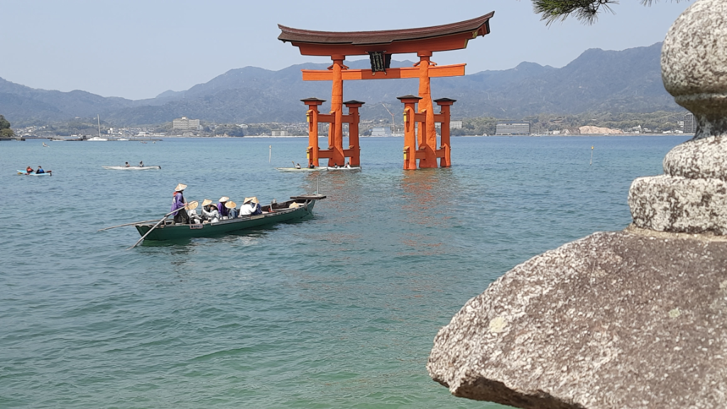 A tram, a train and a ferry took us to Mayajimi Island this morning. Known for its forests and ancient temples, roaming deer, and just offshore, the giant, orange Great Torii Gate marks the entrance to the Itsukushima Shrine, a beautiful place. I was lucky enough to visit relatively early, so it was quiet. A lot of the activity was around a wedding party, which was followed by a prayer session by a group of monks. It was a lovely way to pass a morning.