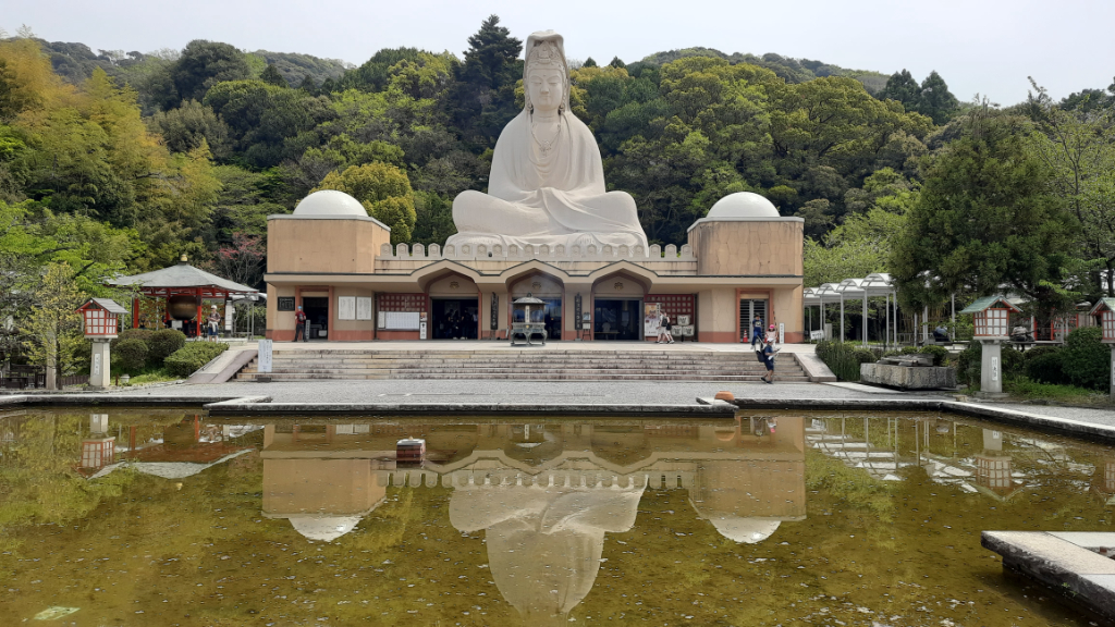 This morning, I went with Michael and the boys to revisit the Gion district to visit the Yasaka Shrine. The shrine includes several buildings, including gates, a main hall and a stage. It was good to be there early to miss out on the crowds. We followed this with the Ryozen Kannon, a beautiful, peaceful Buddhist temple commemorating the dead of the Pacific War. The memorial with its stained windows was very touching. The whole temple is dominated by a giant statue of Buddha. Next on our list of places to visit whilst in the area was the Kodai-Ji Temple. This temple, set in lovely gardens with turtles and fish-filled lakes, was a pleasant way to spend some time. It even had its own bamboo Grove, which was much quieter than yesterday’s.
