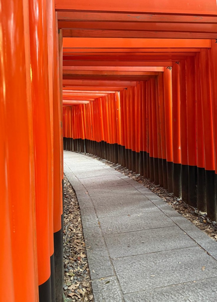 After a brief stop on our return to our hotel, we headed out again to visit the Fushimi Inari Shrine, famed for its thousands of bright red Torii gates, which wind their way up a series of trails through the wooded forest of the sacred Mount Inari. Again, the temple was quite crowded so it was difficult to capture those iconic ‘Insta-type’ photographs of the gates disappearing into the background.