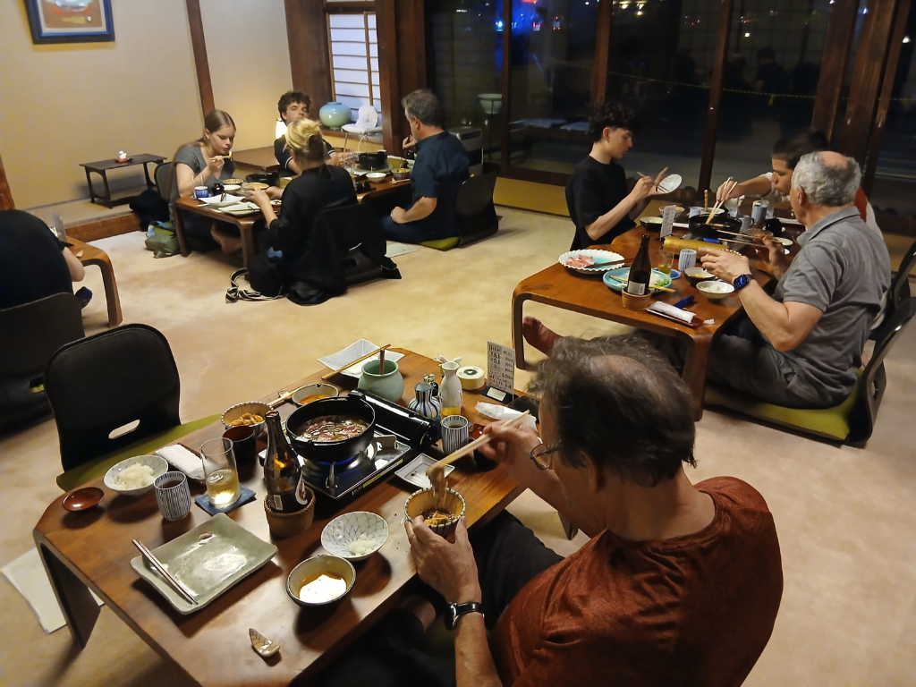 Since we wouldn’t get the chance to all be together for our final meal, we decided to splash out on a special Sukiyaki dinner in a wonderful restaurant called Kyoumachi, this was a really wonderful meal, served in an Edo styled room, with mats on the floor on low tables, by waitresses in traditional clothing. The food was delicious, served raw, and we cooked it in a hot pot as required. It really was a special meal I will remember for some time.