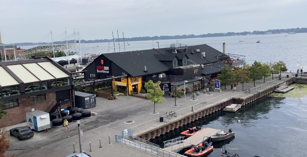 The first Air Canada flight of our trip went well, leaving a bright and sunny Edinburgh morning behind as we made our way west, passing over Iceland and Greenland to Toronto. Due to the minus 5-hour time difference, we touched down in Toronto bang on schedule around 11:00. The passage through immigration and baggage collection was extremely smooth, and we met our driver who whisked us into town after a 30-minute drive. As expected, our room wasn’t ready, so we popped into a nice bar next door for a refreshing beer in the sunshine. Eventually, we checked into the Radisson Blu, which is situated on the Lake Ontario shoreline near the CN Tower. We were allocated a nice, spacious room, which, despite the lack of wardrobe space, suited us perfectly for our stay. To help us get acquainted with the city, we set off to find where we are to be picked up on Thursday for our Niagara tour. This was easy to find, as is everything in the city when viewed in relation to the CN Tower.