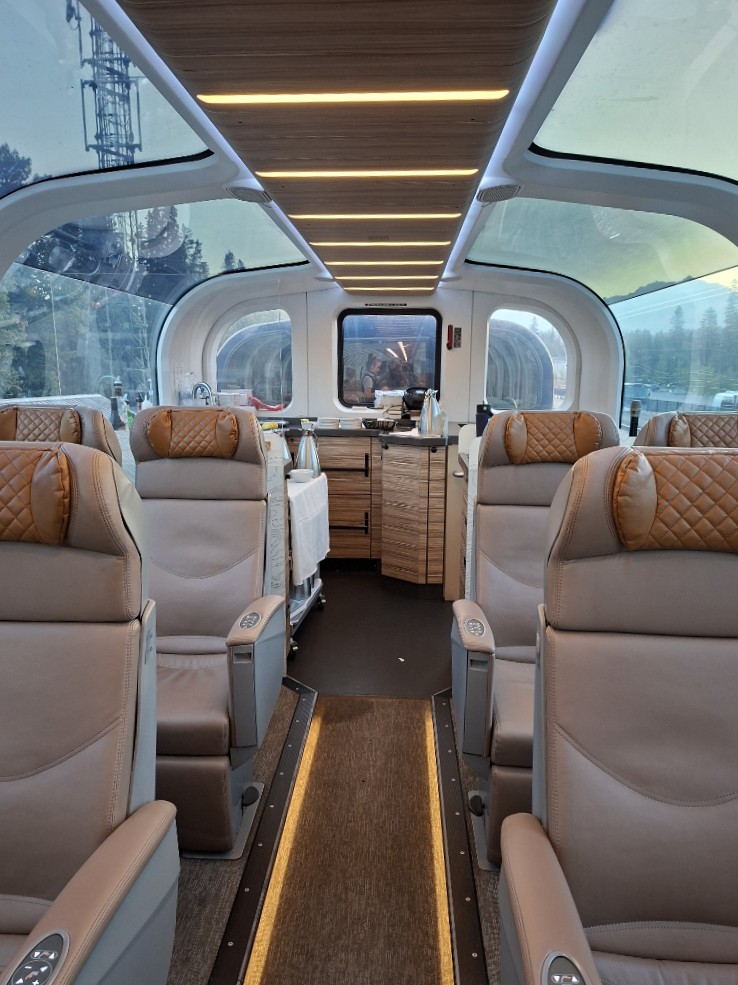 We had booked a Goldleaf Service rather than the Silverleaf, which provided us with a double-decked carriage with a lower deck containing a dining room, large, spacious and clean toilets, an open-air viewing platform, whilst on the upper deck we had larger, comfier reclining seats with tons of legroom, plus fabulous full glass-dome windows with panoramic views. This level of service also provided an upgraded food and drinks package plus a slightly superior hotel at our mid-point stopover. Was it worth the additional cost? Read my conclusions at the end of the journey.