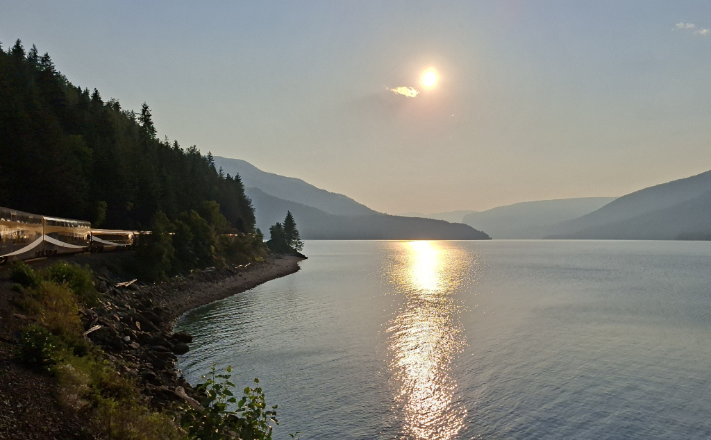 The pace of the journey was at all times dictated by the volume of traffic on the line at any given time, with freight trains taking precedence. As there were a number of trains in front of us, we were often slightly delayed. Due to these delays, we were served an extra meal at dinner time, which was very welcome. It also allowed us to take some nice sunset photographs on the way. I thought that I would be taking tons of photographs during the trip, but there was just too much wonderful scenery of mountains, rivers and lakes, that it was impossible to capture it all. We were told that this is the busy season for grain trains, which are given priority on the line. This caused us to reach Kamloops much later than expected. On arrival, we boarded coaches in the dark and were taken to our hotel, the Windgate, to find our luggage already in our room, or at least some of it. By the time we checked in and searched, and found Jim’s misplaced backpack, it was time for bed.