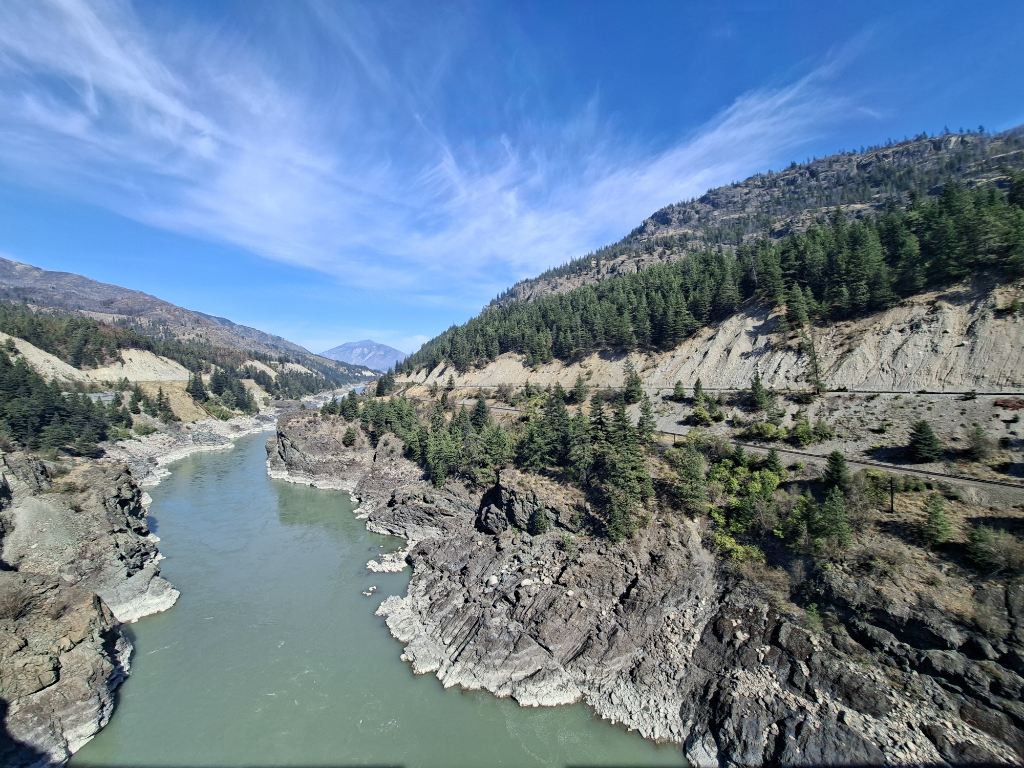 Day 2 of our railway journey started with us being collected early in the morning and taken back by coach to the Rocky Mountaineer terminal to reboard the train to be waved off by the terminal staff. We were later told that they were the night shift staff, and waving the train off was the last duty of their shift. As we had our meals on the first sitting yesterday, it was our turn to dine in the second sitting, while the first group were having their breakfast, we were given a coffee and a pastry. This was a nice way to start the day, riding along the Kamloops Lakeshore watching the eagles soaring above the waters, in yet another brilliantly sunny day, the weather on this trip has surpassed us; we never expected it to be so sunny and warm.