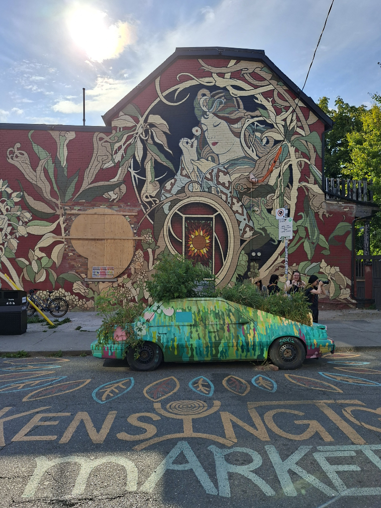 After our excitement at the tower, we decided to have a relatively quiet afternoon, so we jumped on a tram up Spadina Avenue towards Chinatown, where we had lunch and did some shopping. As the adjacent area known as Kensington Market was close at hand, the entry into the area was easy to find with the statue of the cat on a chair standing at the corner of Spadina and St Andrew Street. This quirky area is reminiscent of Freetown Christiania in Stockholm, with interesting shops, bars and restaurants, plus loads of eccentric characters. The area also hosts Toronto’s smallest park with its Garden Car. This was a great area for me with loads of bright, vibrant street art to be found, normally in Chinatowns. We also paid a visit to Toronto’s Graffiti Alley, which appeared to us as a bit messy, although there were a couple of nice pieces.