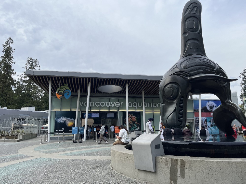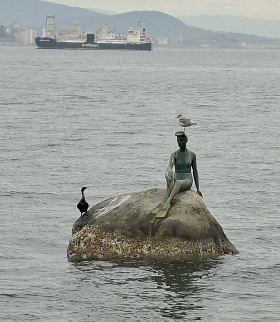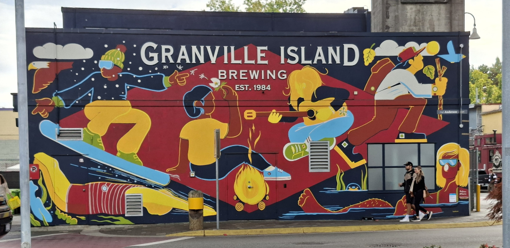 We decided to use the local HOHO bus, which fortunately stopped outside our hotel, to explore the city. Most of the journey through the main sights confirmed that we had indeed visited them all on our walk yesterday. As it was a nice day, we decided to hop off the bus on Granville Island for lunch. This area of the city, previously a derelict industrial area, has been gentrified like many such areas with microbreweries, restaurants, art studios and a bustling Public Market, where we enjoyed our lunch sitting by the waterfront watching the boats go by. There is also Vancouver’s version of silo art with it’s Giants murals on the Island. We then hopped back on the bus to take us to the famed Stanley Park, our friend Cheryl had recommended it to us; it was so relaxing walking through the historic trees of the park before reaching the seawall, which provided us with stunning views of the city, and the ‘almost a copy of Copenhagen’s Little Mermaid statue’, Vancouver’s ‘Girl in a Wetsuit‘ statue. Another of Vancouver’s tourist hotspots within the park is a collection of native Totem Poles, which we found very interesting and well worth seeing. We then got lost in the myriad of forest paths, before admitting defeat and returning to the Aquarium area to ask for directions to the HOHO bus stop for our return trip to the hotel, a nice meal after our siesta finished off yet another excellent day.