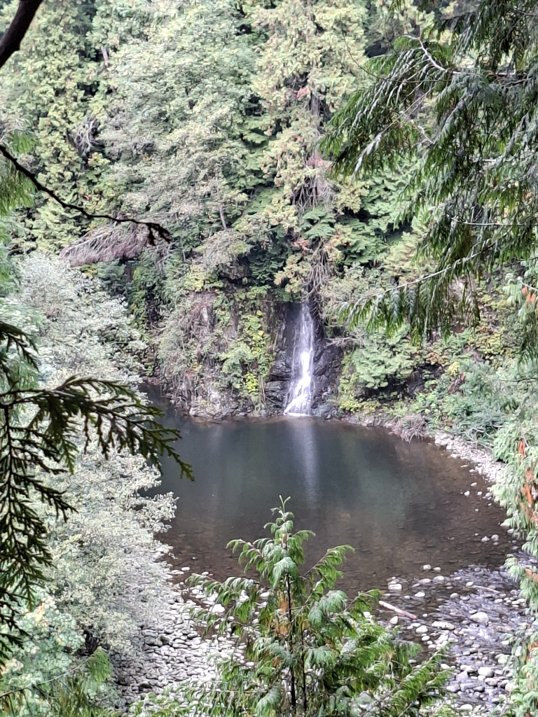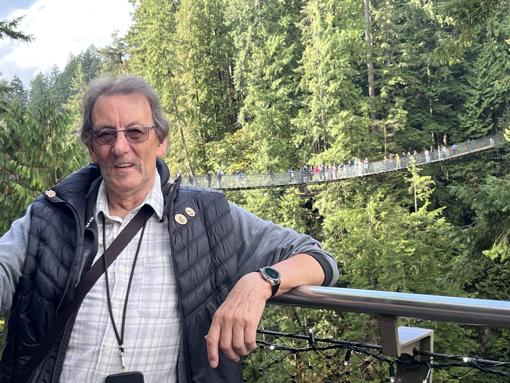 A short walk downtown, stopping off for breakfast in one of our favourite Tim Hortons, brought us to Canada Place and the site of Vancouver’s Olympic Cauldron. There was also a large ‘Digital Orca’ nearby, which prompted Jim to think of giant Lego. Whilst there, we caught a free shuttle bus to the Capilano Suspension Bridgevisitor attraction. The Capilano Suspension Bridge is a narrow, swaying suspension bridge 140 metres long, 70 metres above the Capilano River. The park it is situated in is part of a forest with giant Douglas firs, Red Cedars and Hemlock trees, with the added attraction of the Treetops Adventures, which consists of a series of footbridges suspended between tall trees, taking us up into the tree tops with stunning views of the forest floor below. This was another attraction I would highly recommend to anyone visiting Vancouver.