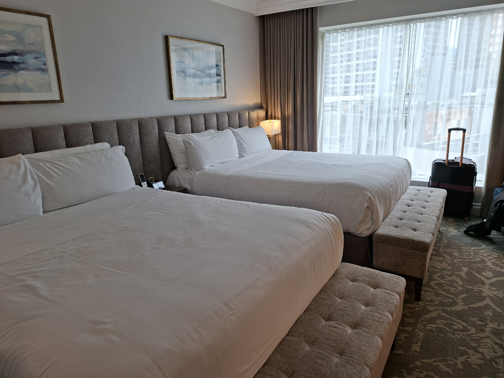 After a bit of a Snafu with an Uber hire, we were eventually dropped off at the Canada Place cruise terminal, where we had to pass through security and USA customs and immigration. Despite the long queues, we passed through this fairly quickly, and we boarded the MV Konigsdam and were directed to our stateroom.