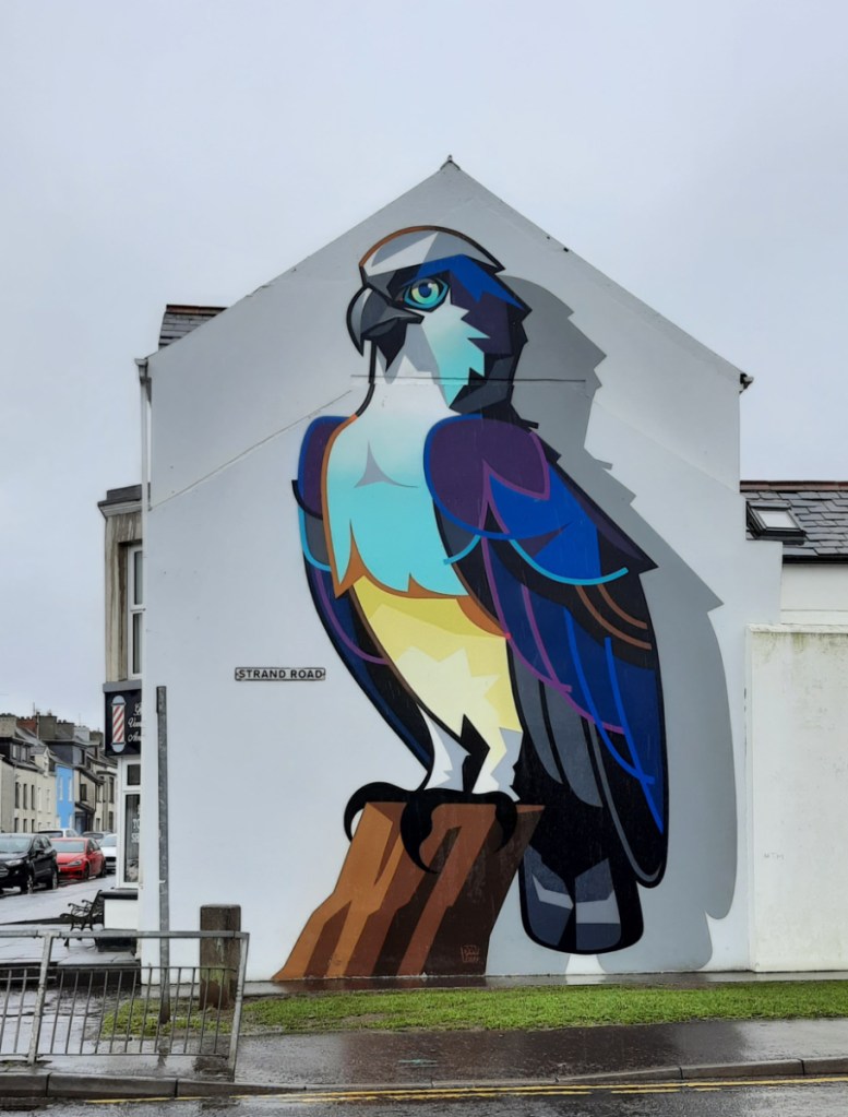 On the way back to Portrush we stopped off to have a look at the ruins of Dunluce Castle, there really wasn’t much to see so we continued along the coast to Portstewart where we had a nice lunch in Morreli’s cafe and a stroll around the town, where we discovered a few good pieces of street art, one of a sea eagle on a large gable was particularly good. We finished off the day by visiting the Portrush Yacht Club for a couple of beers before visiting the Harbour Bar for a meal and a few more beers, we met with Paul again and a load of other nice people and it turned into a bit of a late session.