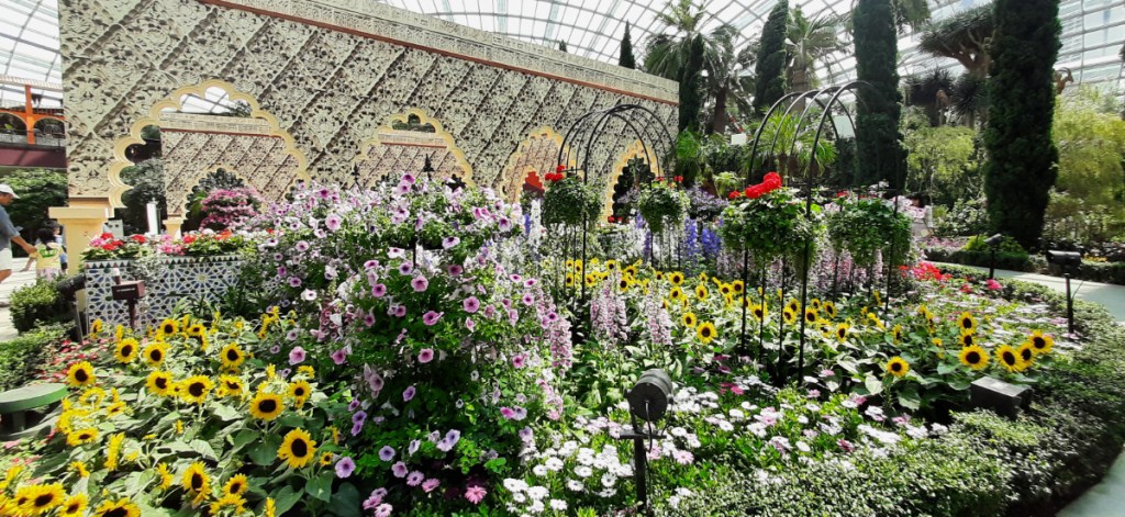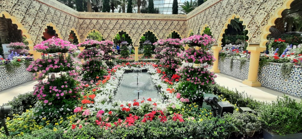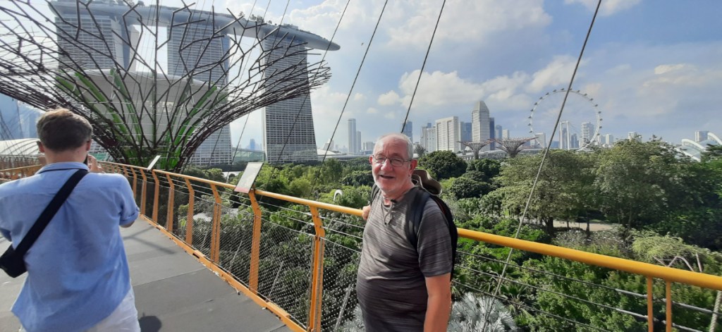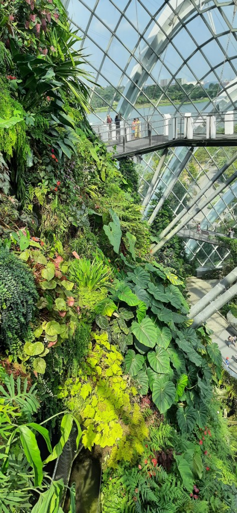 Now that we were in the Bay Area, we crossed over to the Gardens by the Bay, where we decided to see it all if possible, this included the Double Conservatories of the Flower Dome and the Cloud Forest with its 35-meter waterfall and the aerial Cloud Walk. We were stunned by both of them, but especially the Flower Dome, with plant species from the Mediterranean, the African Savannah, and Australia, all in a massive structure. From there we had a stroll through the gardens to the Supertree Grove, the Supertrees are 18 tree-like structures 25 metres to 50 metres tall, they are vertical gardens that are home to enclaves of unique and exotic ferns, vines, orchids and also a vast collection of bromeliads.
