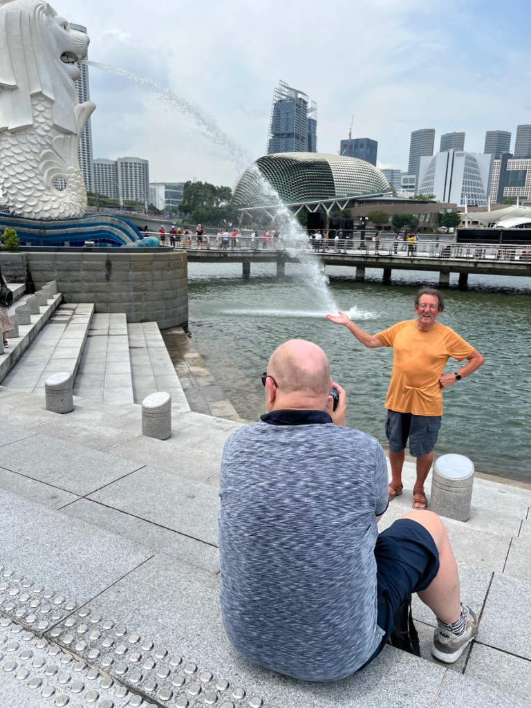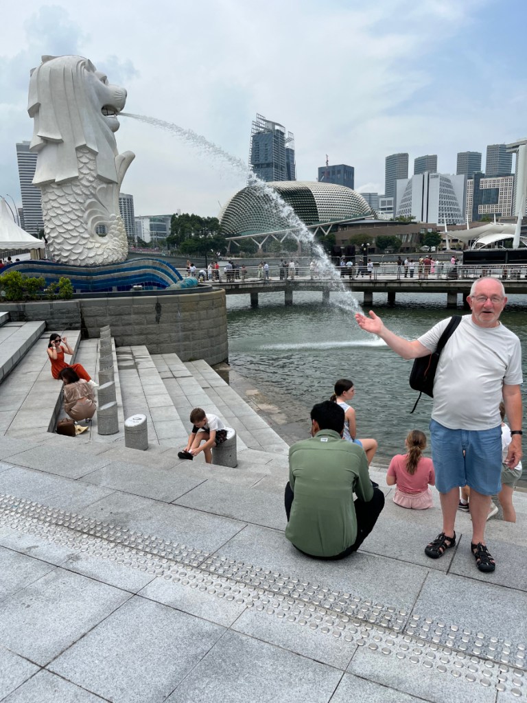 Our main reason for visiting Chinatown was to go to the visitor centre, next to the Buddha Tooth Relic Temple, to buy some phone SIM cards and to scope out tickets for some of the attractions of the city, on reaching the riverbank on Raffles Place, where we sat for a while watching the world go by, we decided to head towards the Merlion Park at Marina Bay, we got there easily and stopped for lunch, Jim loved the large Merlion and Unicorn Elephant statues we found there.