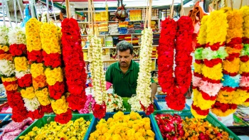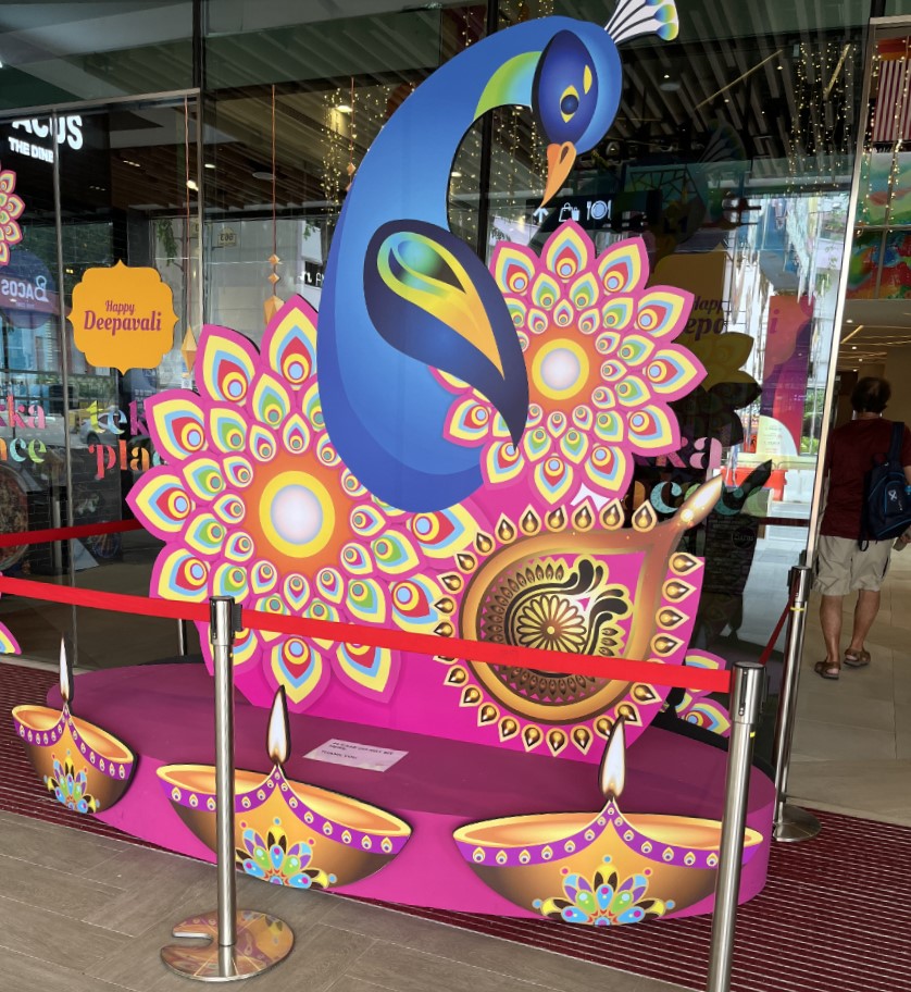 We had a bit of a lie-in this morning after yesterday’s long walks, but we were still in time for a good breakfast before heading out to find the Fort Canning MRT (metro) Station to take us up to Little India, this area of Singapore is where it’s mainly Indian population lives, when wandering the streets there you could be forgiven for thinking that you really were in a part of India. This week sees the festival of Deepavali being celebrated so the streets were decorated with colourful banners and lights and there were many flower sellers on the streets selling colourful garlands.