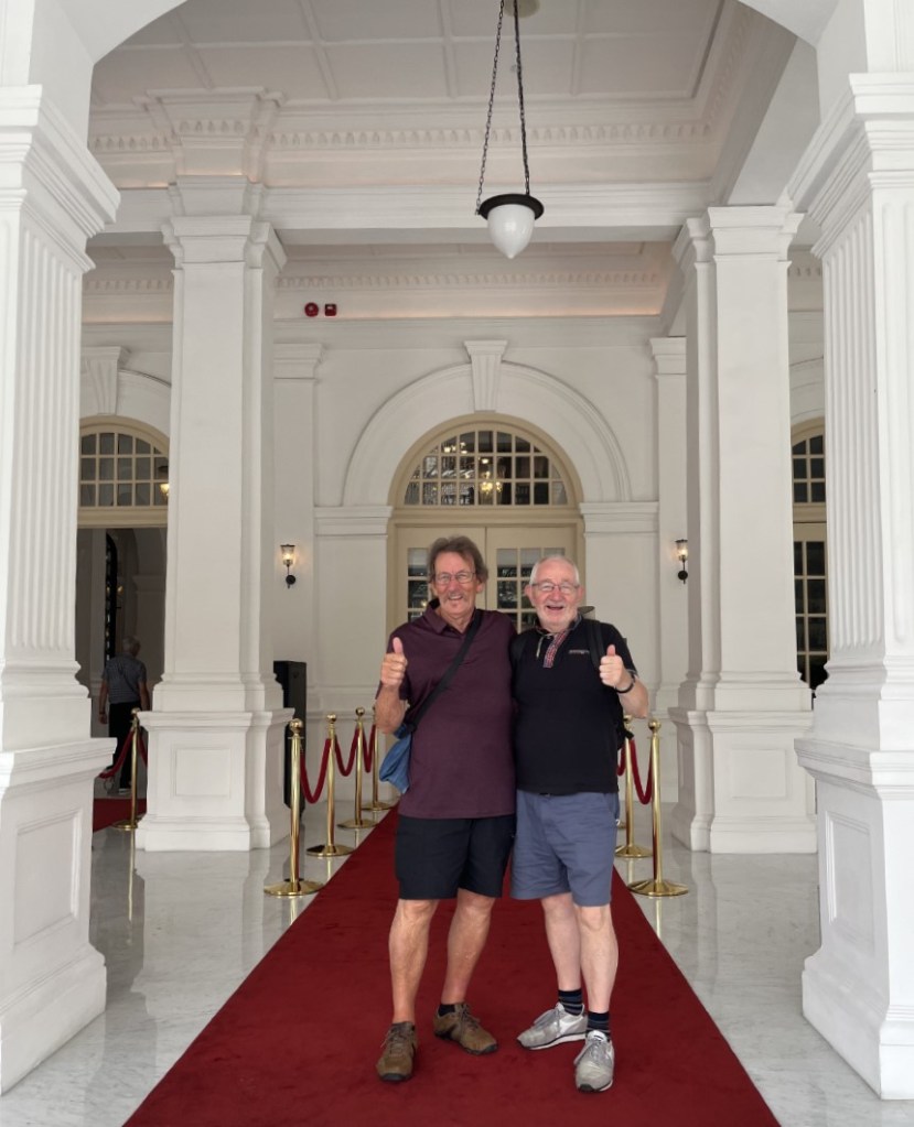 On my last visit to Singapore, Raffles Hotel was closed and undergoing refurbishment and was covered in scaffolding, so I couldn’t see much, this time, however, we saw it in all its glory. We thought that it would be very exclusive and that we wouldn’t be allowed in, how wrong were we, the staff couldn’t have been more helpful, offering to take photographs and guiding us to the best spots, it really was a special place to visit.