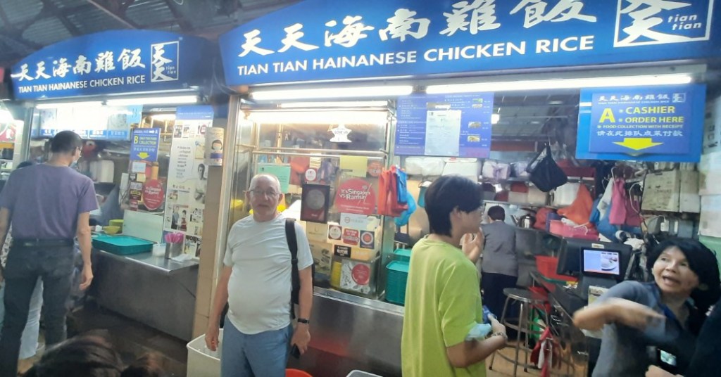 After waiting for the storm to abate, we returned to the cable car to take us back to the mainland where we eventually made our way to Chinatown for a late lunch/early dinner and a well-earned beer in the Maxwell Food Court, which is becoming one of Jim’s favourite places where he likes to sample something different every time we visit.