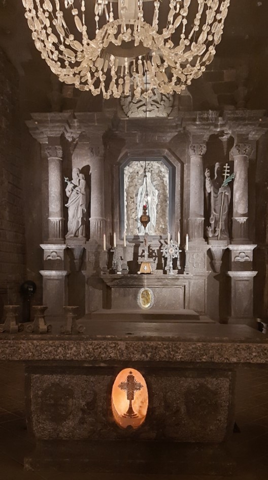 After a nice picnic lunch, provided by the tour company, we then drove to the Wieliczka Salt Mine. At over seven hundred years old, this Salt Mine is hailed as the world’s longest active salt mine, home to one of the world’s oldest active salt-producing companies, and also perhaps the world’s most startling example of industry meets art. The labyrinth of stairs and Chambers (which were quite reminiscent of Waxy O’Connors in Glasgow), took us 135 metres down into the bowels of the mine. On our way down we came across many wonderful, intricate salt carvings depicting the history of the mine. One chamber was created like a cathedral which included a replica of Da Vinci’s Last Supper. We were guided down through the 900 steps by Simon, whose humour made the experience great fun, thankfully there was a lift to get us back to the surface.