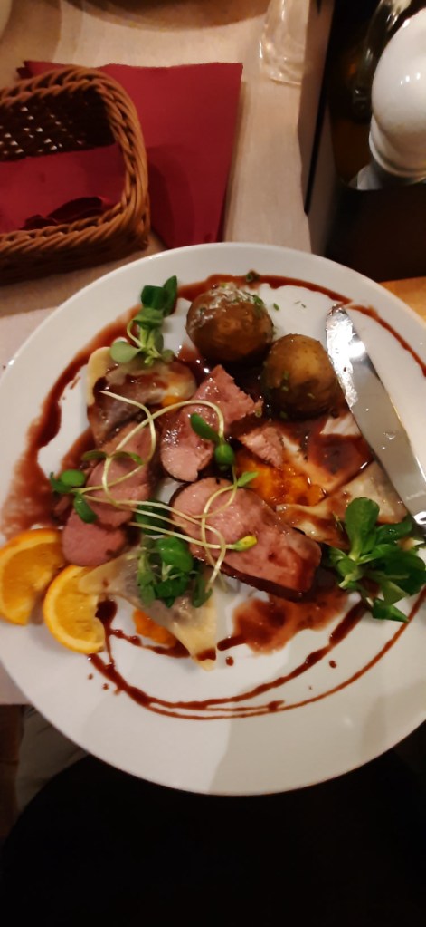 Following a recommendation from the tour guide for some traditional Polish food we headed out to a restaurant called Pod Aniołami – Under the Angels, it certainly looked interesting when we went, but unfortunately, it was full, just like the many others we visited, by chance, we stumbled upon the Czana Kaczka – Black Duck which at first glance had a queue of around 12 waiting for a table, we went around the corner and got a table in a place thinking it was a difficult restaurant, only to disc it was the Black Duck. This turned out to be a great choice, the food was spectacular and the staff were extremely attentive and friendly. We returned home again after yet another great day, a little bit worn out (with over 40,000 steps) for a well-earned rest.