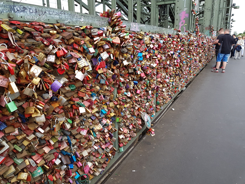 Stefan left us after we had purchased our ticket leaving Hiltud to give us a guided tour of the city, she showed us to the interesting, Roman-Germanic Museum before taking us across the Hohenzollern Bridge, famous for its ‘love locks’. For several years now, love locks have been considered one of Cologne’s most charming traditions. As proof of their love, couples fix padlocks to the railings on the Hohenzollern Bridge; to ensure everlasting love, they then throw the key into the Rhine river below. Experts estimate that the padlocks weigh over two tonnes. And more padlocks appear on a daily basis, as not just the residents of Cologne, but also tourists want to become part of the tradition, we met with a couple from Alice Springs in Australia, someplace I’ve always wanted to visit.