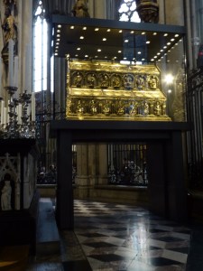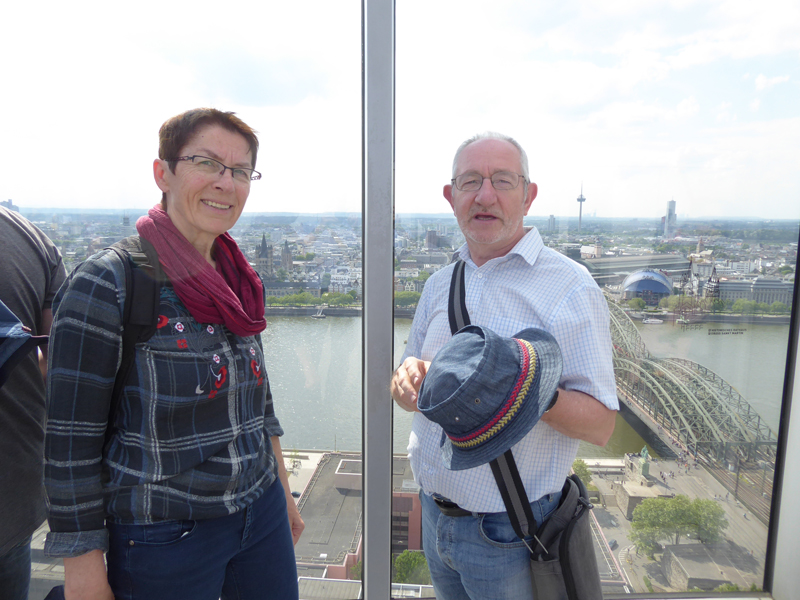 Thursday 10th May, saw us doing the usual tourist type things, we visited the Dom, (Cologne Cathedral), discovering that it was ascension day, which was also fathers day in Germany, when we visited the Dom, there was a service underway and we enjoyed just sitting listening to the choir and the music. We visited the treasury and marvelled at the relics within, this led us to the tower climb, as usual, we got a bit mixed up by not realising the extent of the climb, which was a lot higher than we expected, I was quite knackered when I reached the top. Being near the largest single-cast bell in the world when it rang out, didn’t help matters too. After our efforts, we earned our afternoon tea in Cafe Reichard.