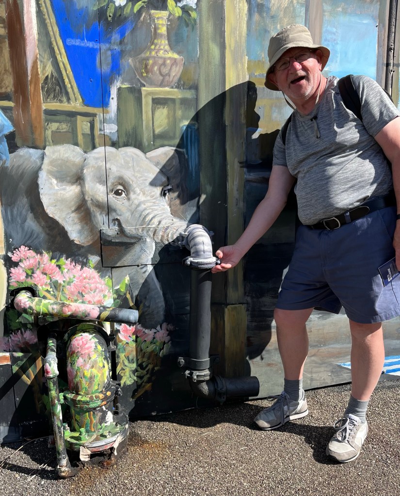 Following yesterday’s orientation tour, we returned to the visitor centre in town to take up their street art walking tour, although I had done this 4 years ago, I thought it would be good to do it again, this time Joan, our guide, approached it differently, with slightly more emphasis on the sculptures. It was good to see that almost all of the good murals in Wolf Lane and Globe Lane still remained.