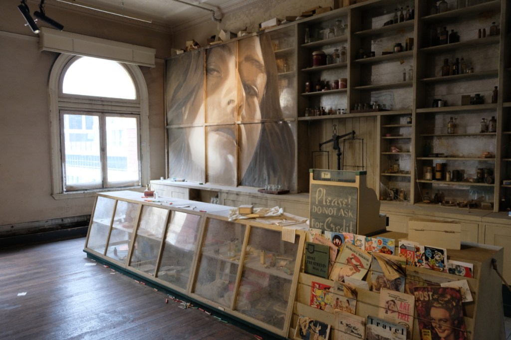 Watching over every room is a portrait of Rone’s long-time muse, Teresa Oman, and the scene is made more memorable with the clever use of lighting and an original score by local songwriter, composer, and multi-instrumentalist, Nick Batterham. A YouTube video tour of the exhibition can be seen here: