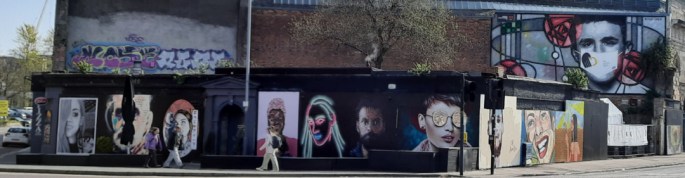 The new ones, the Glasgow Faces, were added in July 2020, by a band of Glasgow’s talented artists, namely Ejek, Michael Corr, Little Book Transfers, Claudine O’Sullivan, Michelle Campbell, Rogue-One, Coll Hamilton, Jody Kelly, Christian Kerr, and Robotic Ewe, they all certainly add a great deal to the Bridgegate corner. One that really caught my fancy was Michelle Campbell’s clever geometric portrait, when I looked at it straight on all I could see were random shapes, looked at through my camera the face appeared, it’s spectacular.