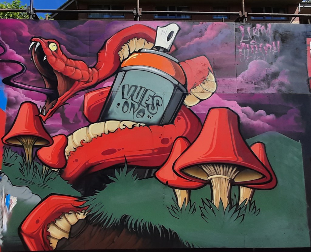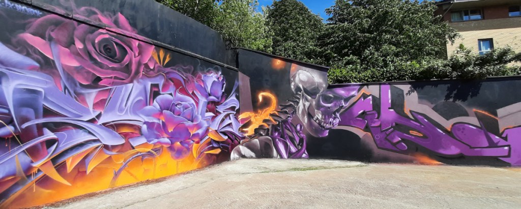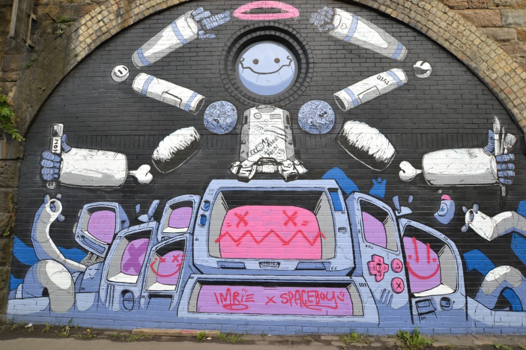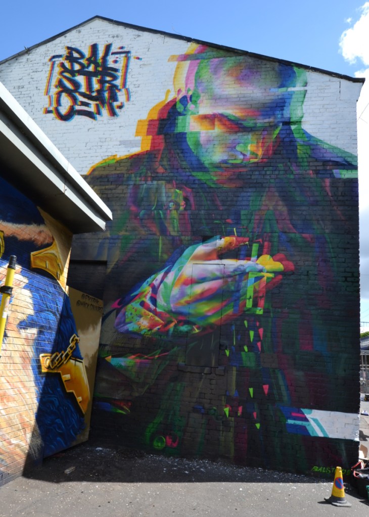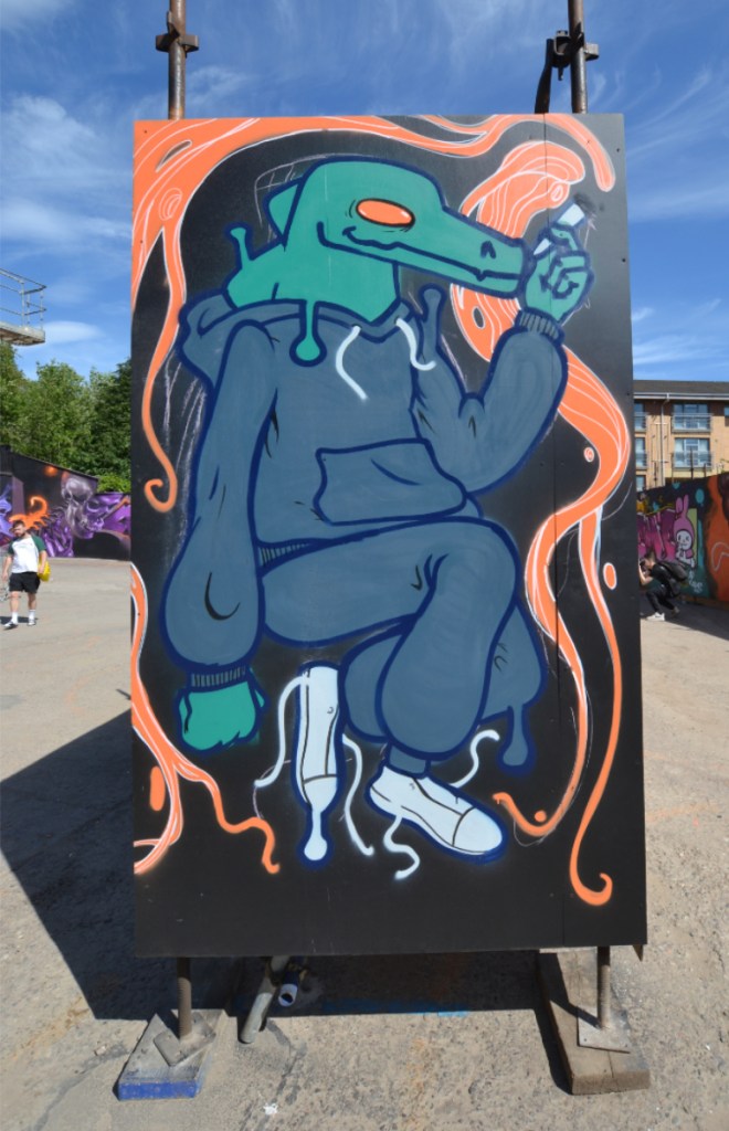 We were spoiled for choice at this year’s Yardworks. From the moment you entered Eastvale Place you were met with a blaze of colour with murals from Mack Colours, Frodrik, Mul Draws, Balstroem, Bmore Sketchy and Box Vincent. Further into the street there were the boards being created for a temporary display for Glasgow University on Byres Road. Then there was the yard itself, despite the building works going on for the new studio, Gaz and his team did a spectacular job the laying out the space with large boards for the artists. As usual, there were plenty of things for all the family, activities for the kids and great food and drink options, all-in-all a great weekend.