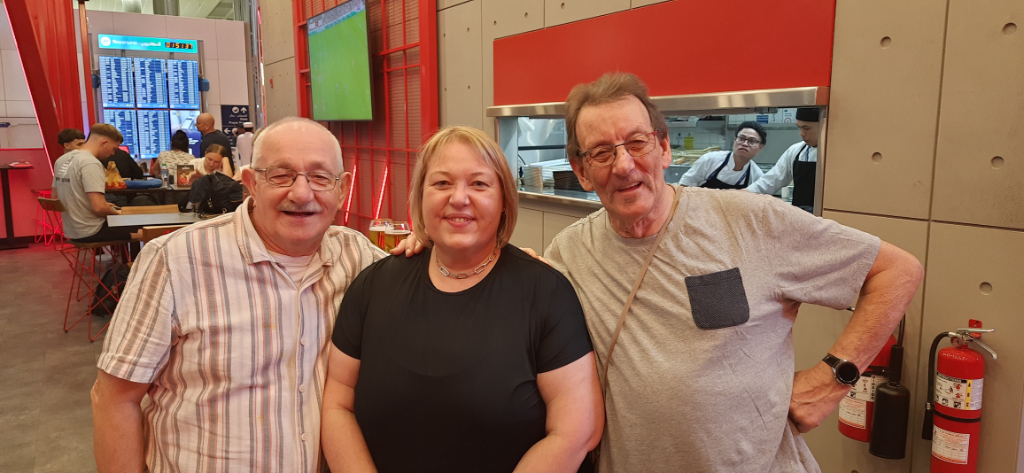 I am off on some travels again, with my mate and travelling buddy, Jim Lewars in tow. Glasgow Airport was our destination this morning, Jim’s son, Alastair did the honours by dropping us off, and we got checked in and through security with no problems, this was made easier by us going through the priority security section courtesy of Lesley, one of our Scotia friends, all we had to do was wait by the gate for our flight to Dubai. Despite it being a bit tempting, we decided to miss out on the early morning airport pint. Jim was a bit disappointed that the Wetherspoons did not have a carpet to add to his growing collection of ‘Spoons carpet photographs.