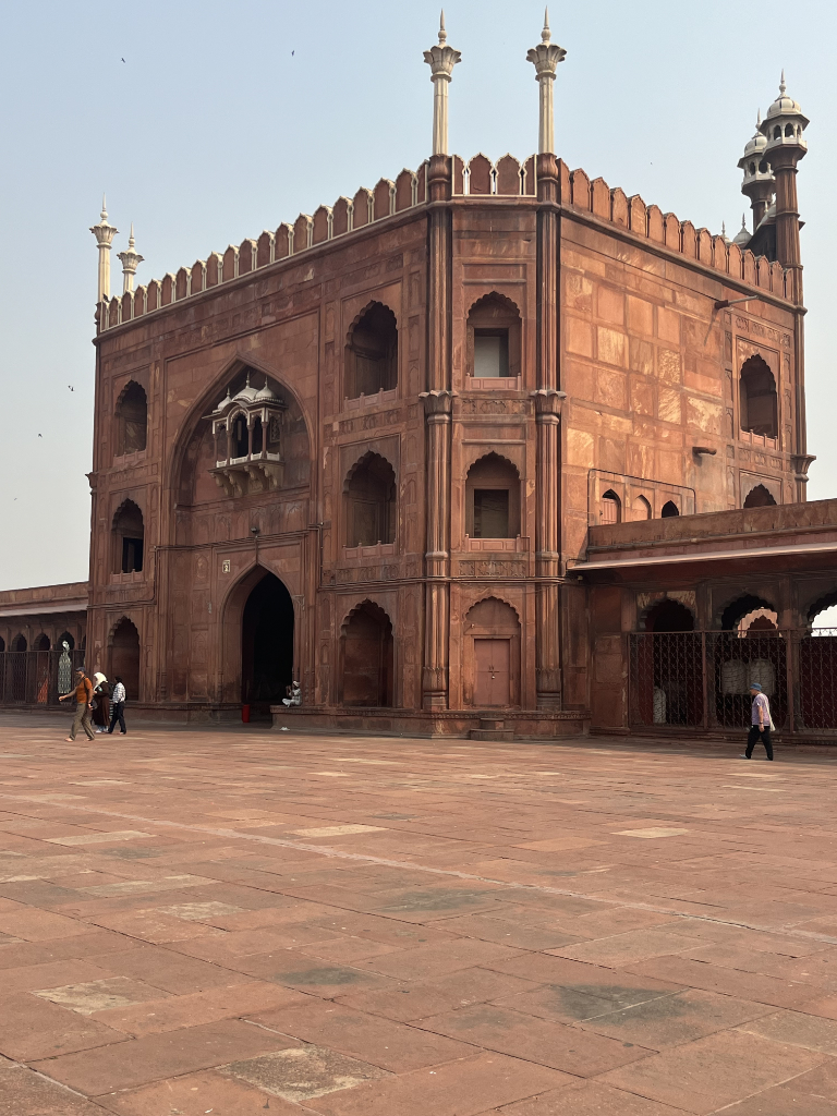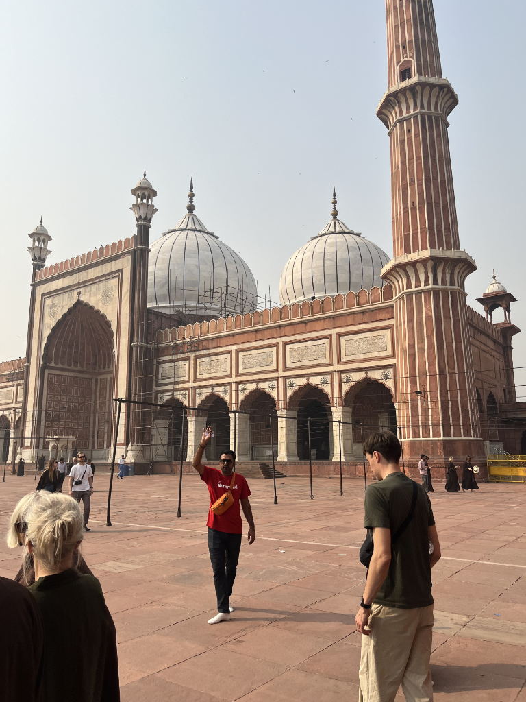 The group assembled early this morning to leave for a nearby hotel for breakfast, before hitting the Metro for a trip into Old Delhi for a visit to the Jama Masjid Mosque, one of the largest in India, capable of holding 25,000 people, the mosque stands on an elevated site 10 metres above the street. It certainly is an impressive sight, with its grand courtyard, and many intricate carvings of marble and the red sandstone of the area.