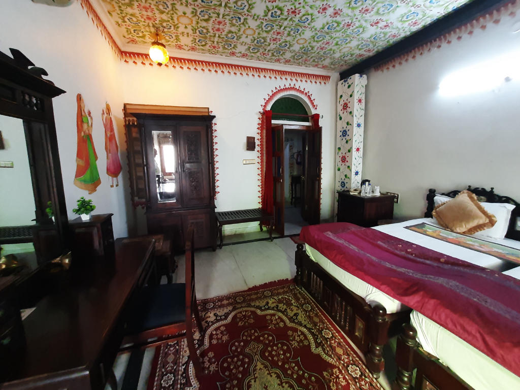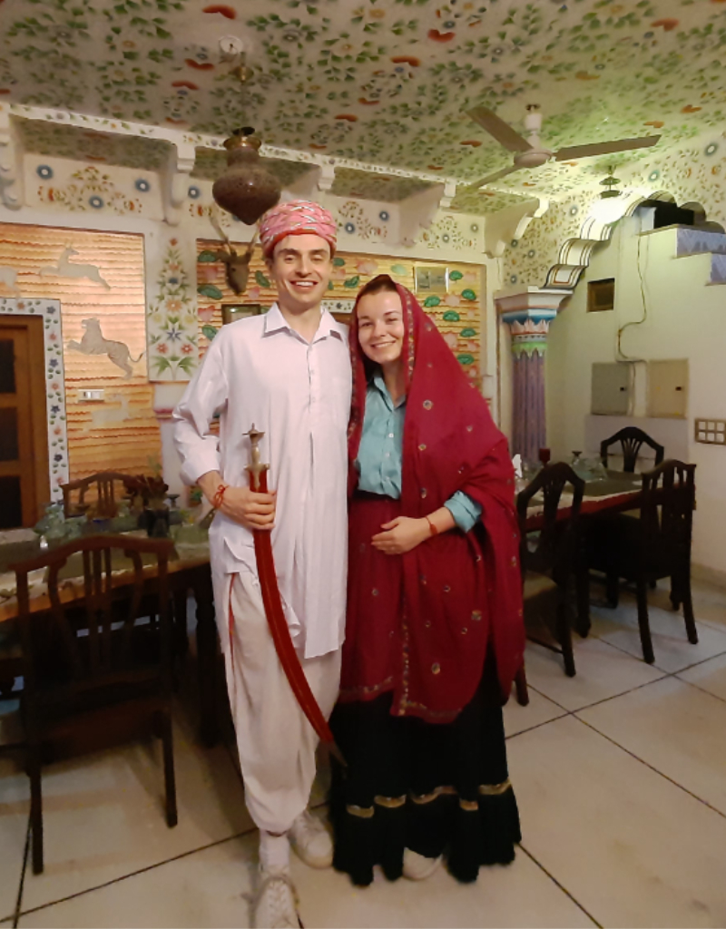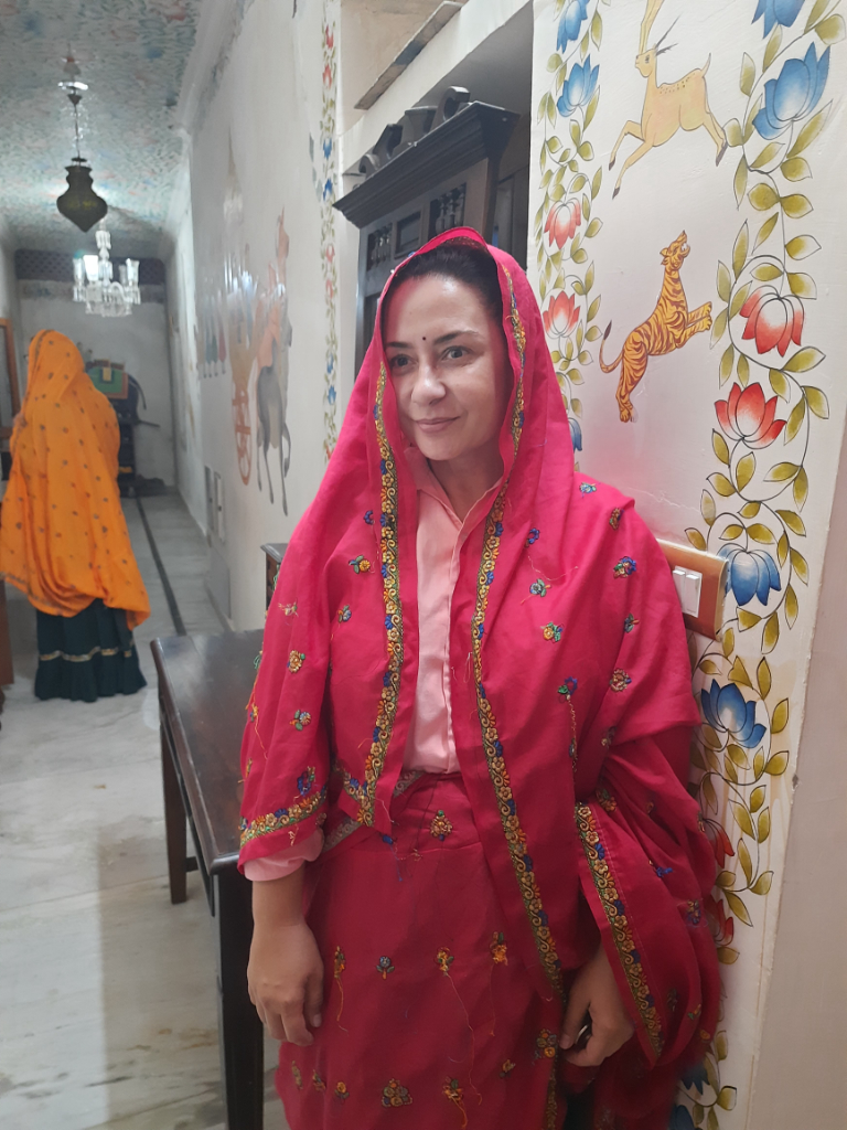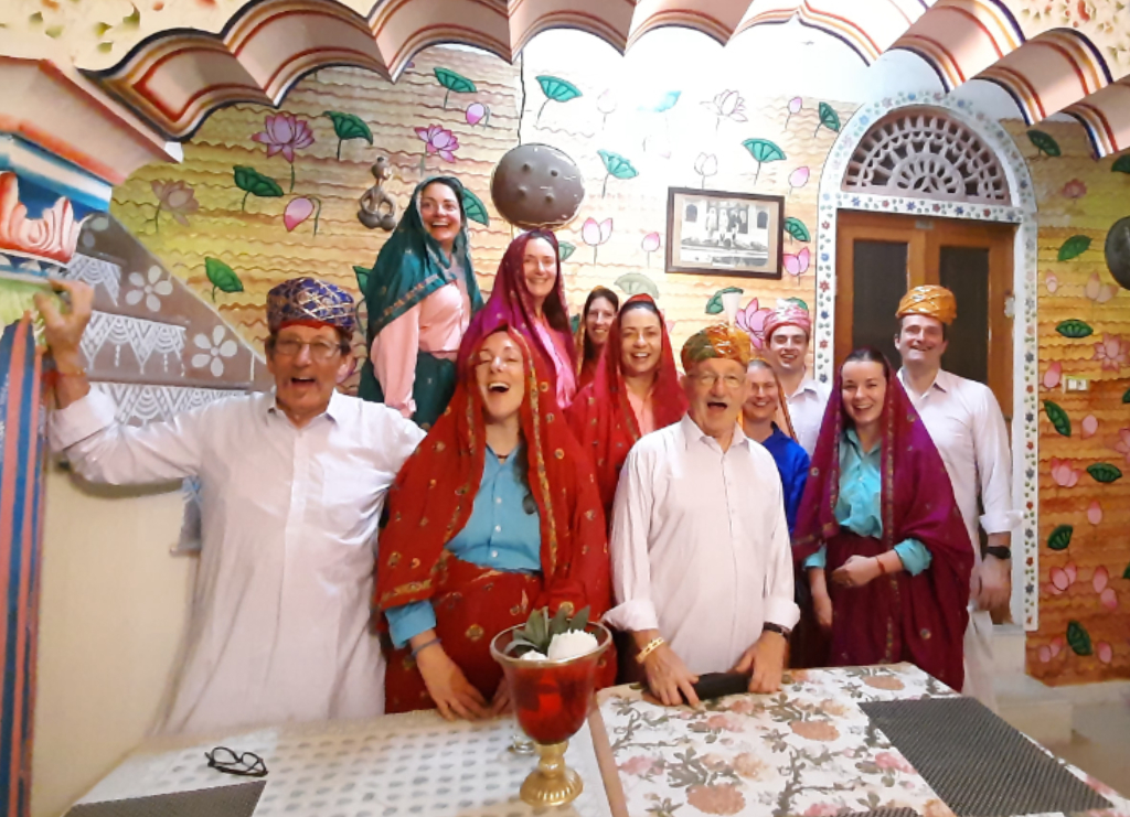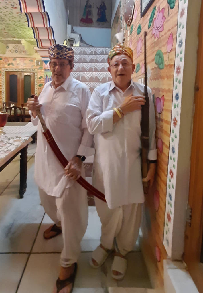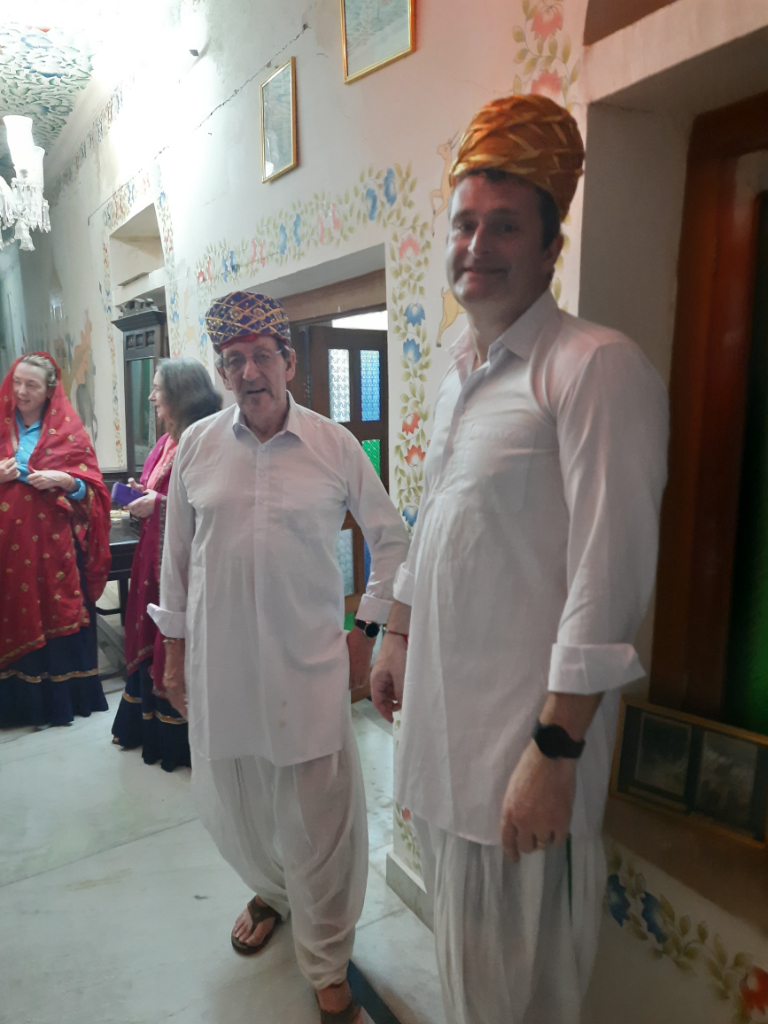 Leaving Jaipur behind we drove eastwards towards the village of Karauli, after the usual stops on the way, we eventually arrived at Suroth Mahal, a stunning heritage property (a Mahal is defined as a mansion or palace, and this one certainly was). Everyone in the group was blown away by the opulence of the bedrooms we were allocated, this was the only accommodation where we all wanted to see each other’s rooms, they were all so very different, We had a huge room with an enormous bathroom. After checking in and getting ourselves sorted, we walked around the friendly village, before returning to the hotel to enjoy drinks on the rooftop. We all had a bit of fun before dinner by being dressed in local costumes. After dinner we were entertained by a pair of local dancers, who encouraged us all to join in, we all thought it was great fun.