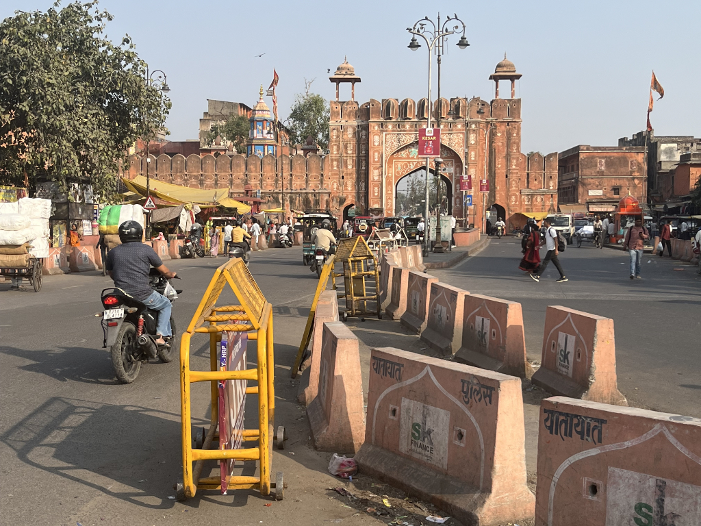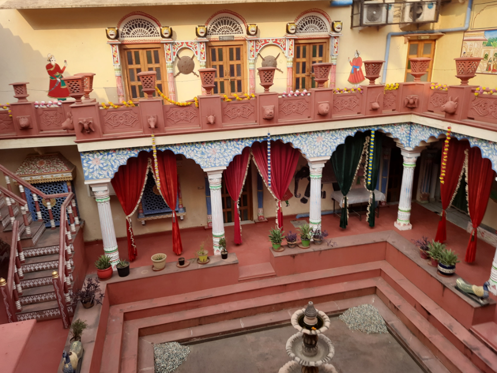 To avoid the early morning rush hour, we departed early for our journey to Jaipur, which was estimated to take around 6-7 hours. The journey was interesting, as we saw many different towns and villages along the way. We stopped off for breakfast at a roadhouse on the way, then continued to Jaipur. We arrived at the hotel, the Arya Niwas, a quaint, colonial-style place, in time for a late lunch.
