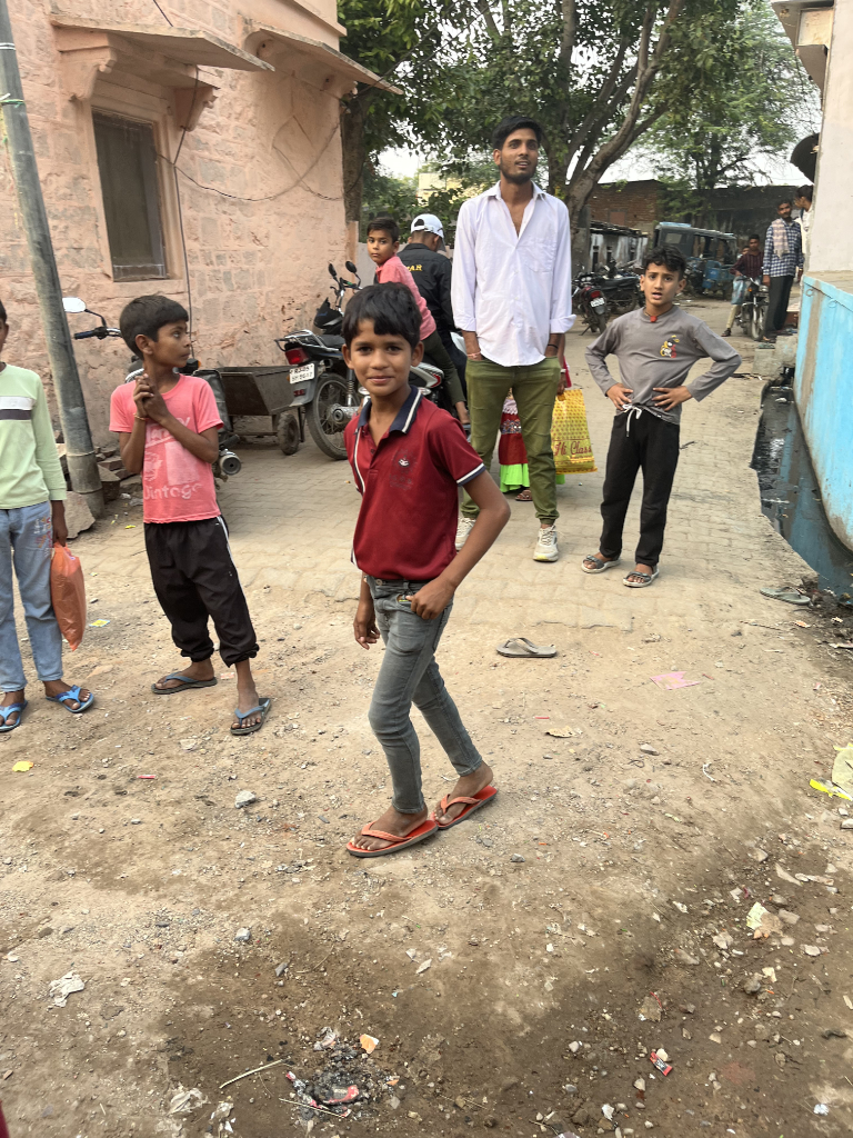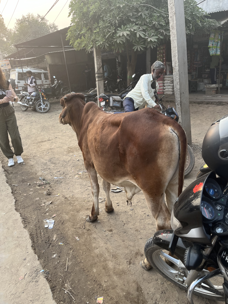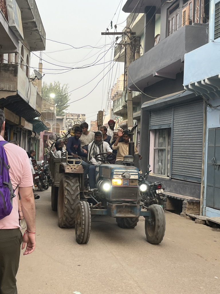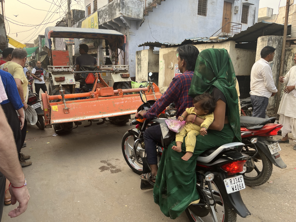 During our walk around the village we could see how the local people lived, the village appeared to be a typical rural village with around 14000 inhabitants. From what we could see on our short walk were friendly happy people, however, the contrast between their housing and the mahal was quite striking, I especially liked the milkman’s delivery bike.
