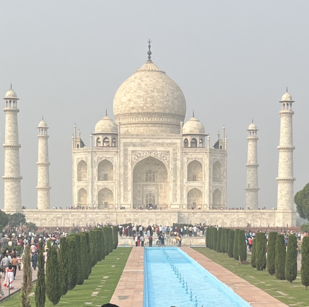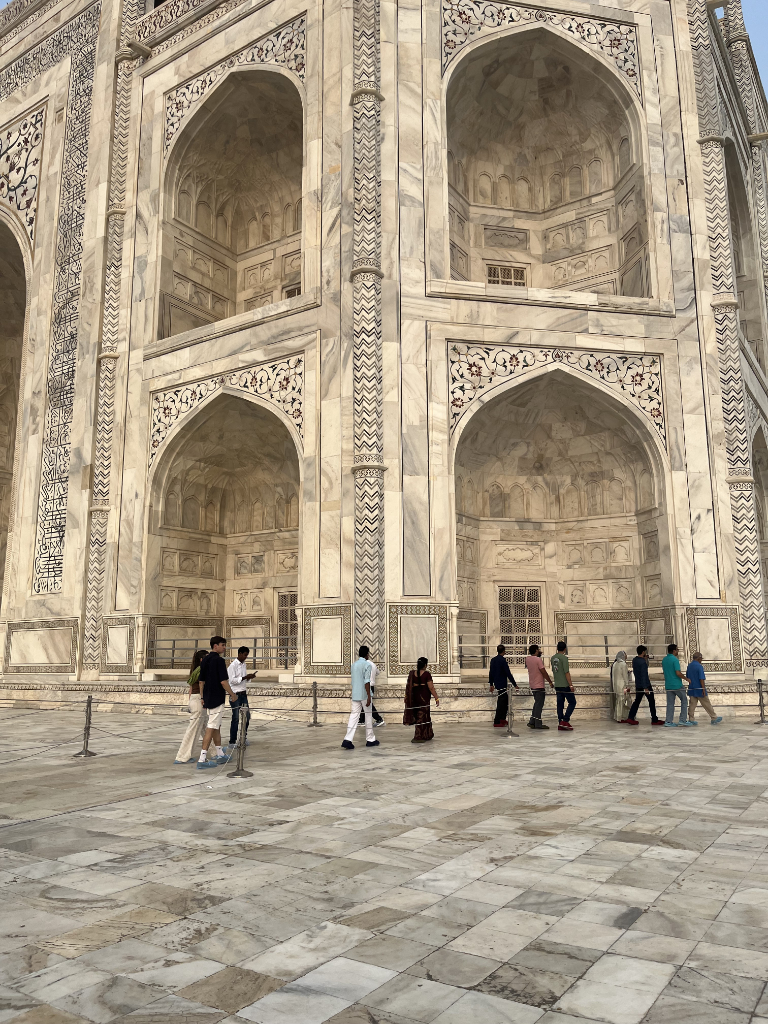 Our final destination for today was Agra, but we stopped en route at the one-time capital of the Mughal empire, Fatehpur Sikri. Behind its massive entrance is a stunning mosque displaying both Persian and Hindu designs, set in beautiful gardens. Our local guide, took us back in time to when the palace was built, speaking with great enthusiasm about the lives and times of the Mughal emperor and his many wives and concubines.