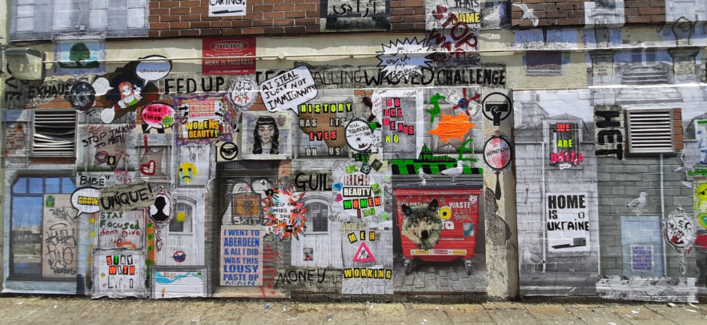 I did manage to get up to Aberdeen for Nuart 2023, I travelled up on Friday, with my mate Jim and booked into the Lost Guest House on Bon Accord Street. Once we had checked in and unpacked, we then went for a belated lunch, before nipping into the local Tourist Information shop to pick up a festival map. Map in hand we went for a wander to see what we could find.