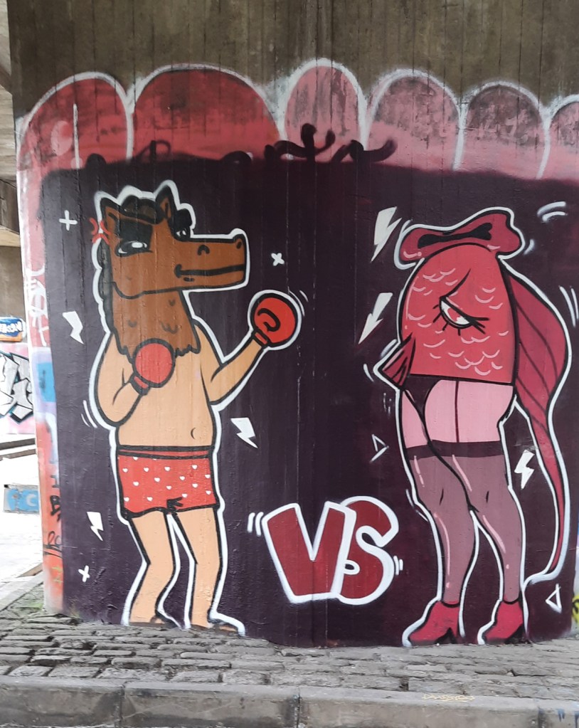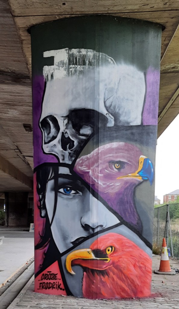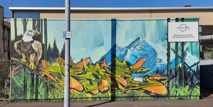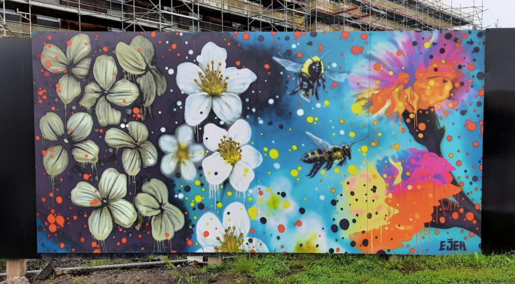I was the artist Liaison on the Bandersnatch stage which had a sort of folkie and blues vibes, and thanks to Chris Blackmore, the Stage Manager and Phil the Sound Engineer, the atmosphere there was pretty chilled and relaxing and we had some really entertaining artists on stage including The Mary Wallopers, Rachel Sermanni and John Francis Flynn, it was good to see and listen to Erin Bradley-Scott perform, Erin is one of my favourite art groups, The Cobolt Collective, she certainly is a talented lady. It seems like I can never get away from street art and artists, I even came across a nice piece by Ross MacRae next to the Jabberwocky stage, I really like his work.