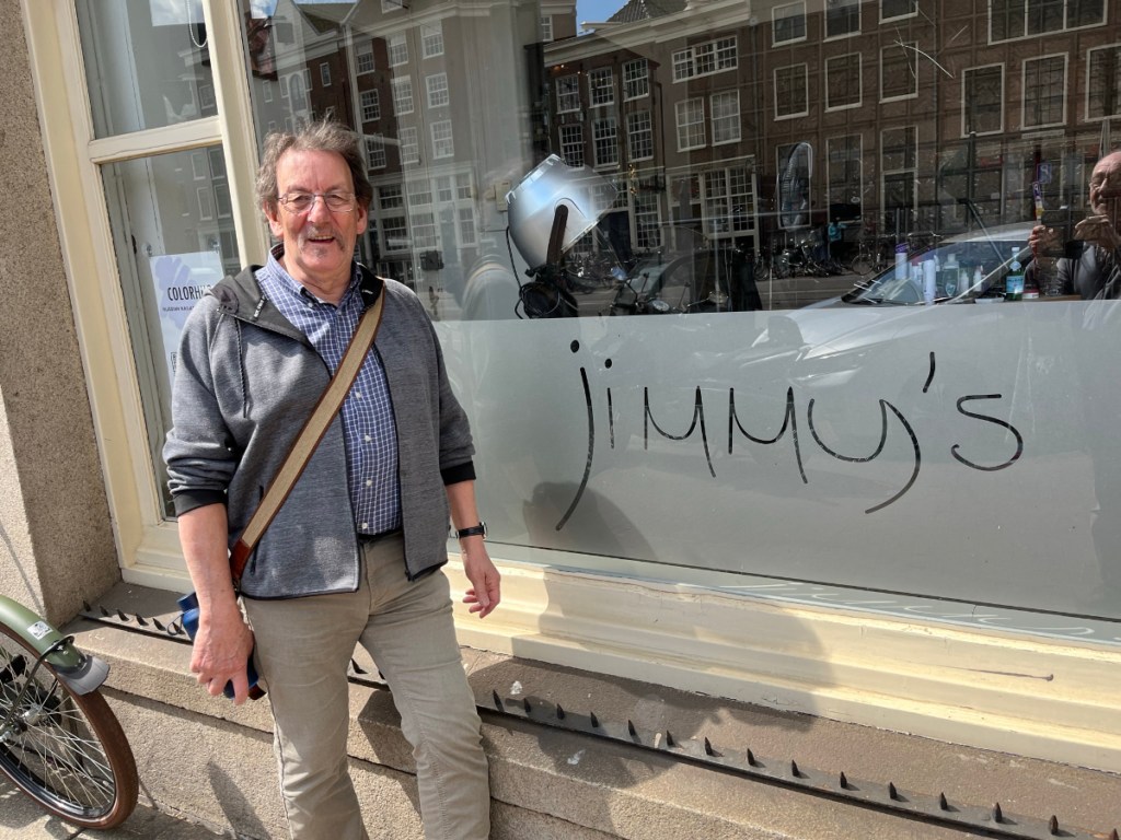 Tuesday 26th April A short stroll through the narrow streets of the west of the city took us to Prinsengracht on the banks of a nice canal where we stopped for breakfast in the famous Pancake Bakery, luckily we arrived before the crowds and got a table easily, the food when it arrived was spectacular and quickly became one of Jim’s favourite ways to have breakfast. We stopped on the way at the Check Point Charlie cafe, which was unfortunately closed, to take some photographs of murals by The London Police, there was another of their pieces on a gable opposite on the other side of the canal so over we went with camera in hand.