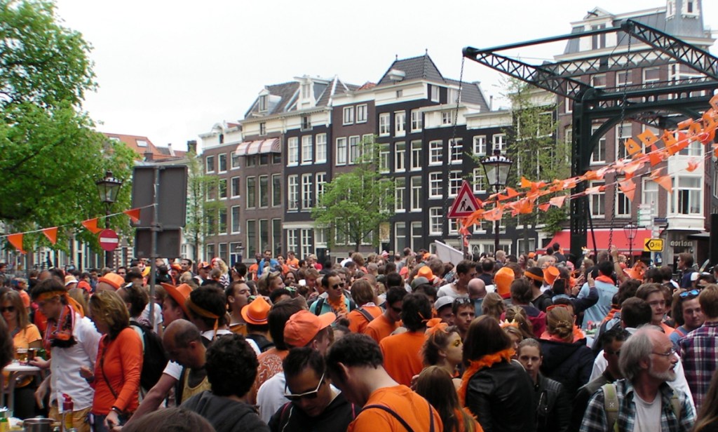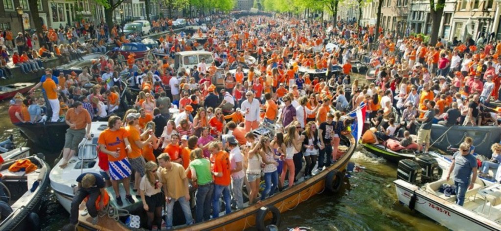 After a weird kind of fusion Dutch/Indian lunch, we returned to the city centre and witnessed the madness begin, we watched as over 800,000 people from the outskirts of the city descended, arriving at the station as we returned on the ferry. It all started off well with us following a marching drum band down the street into a sea of bright orange..