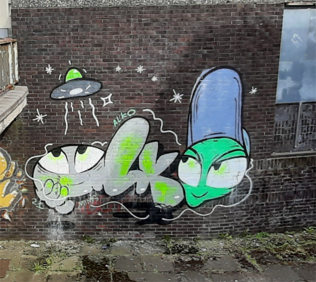 Firstly we visited Smug’s gable end mural on Govan Road at the Riverside Gardens, this mural depicts a small girl picking up a daffodil, with scenes of Govan’s industrial heritage behind her, including an image of the great ocean liner, Empress of Britain, which was built in Govan by the Fairfield Shipbuilding and Engineering Company and launched in 1905.