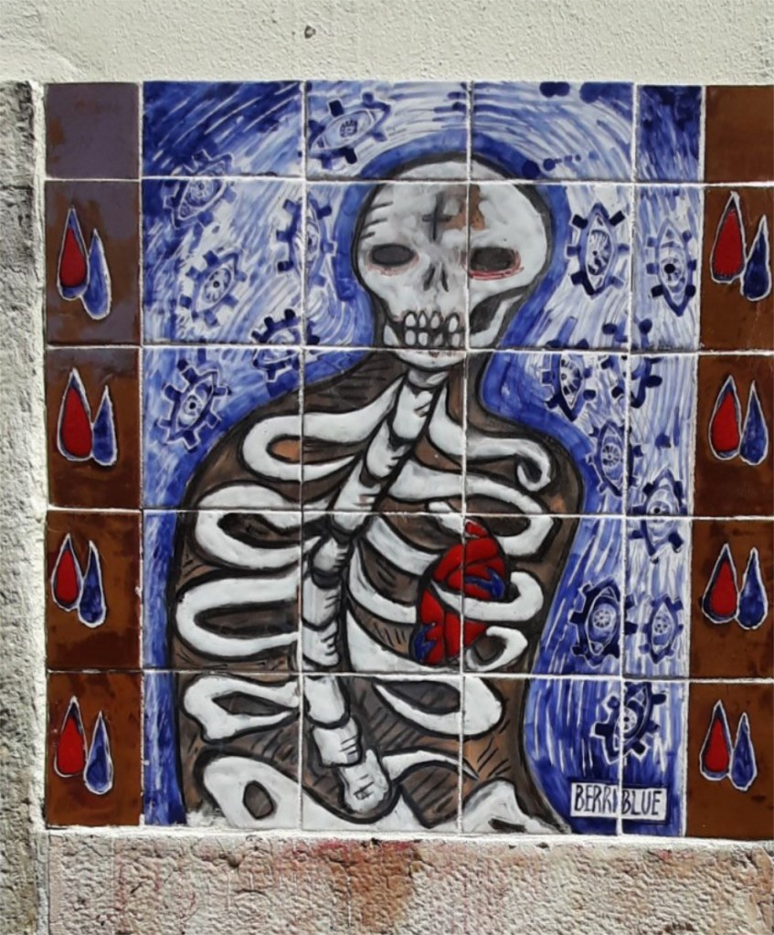 Back on the streets, there was plenty to choose from, I especially like the work of another 3D Lisbon-based artist, Vhils who has developed a relief portrait style where he penetrates through countless layers of posters, dirt, and rendering to expose the different layers of a building to create wonderful, evocative images, I discovered that his work in Lisbon is hard to find, I only managed to find his most recent, a collaboration with American artist Shepard Fairey, they created an image of a girl with each displaying their respective skills.